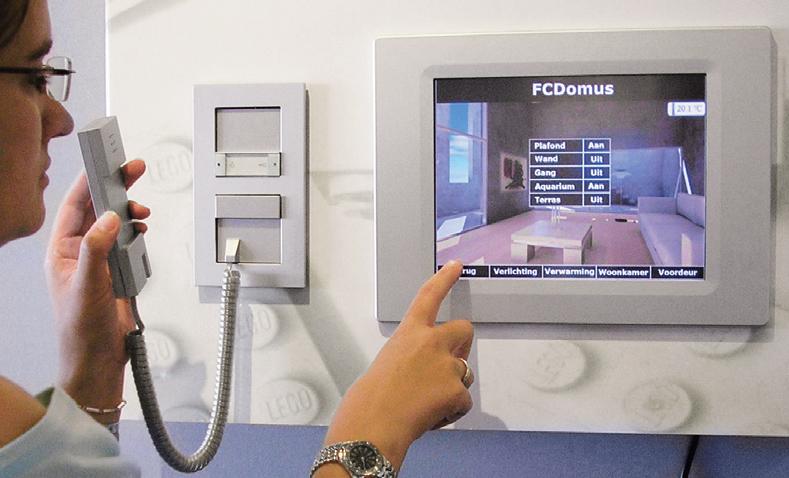Компактный цветной видеодомофон устанавливается в доме.