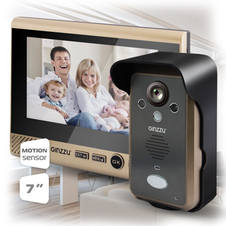 Монитор домофона с диагональю экрана 7”. Управление осуществляется сенсорными кнопками (значки меню выполнены подобном значкам меню современных смартфонов). Поддерживает функции видеорегистратора с детектором движения на 1 канал, будильника, запись фото и видео на SD-карту, использование файлов формата mp3 в качестве мелодии вызова, а также много другие интересные возможности