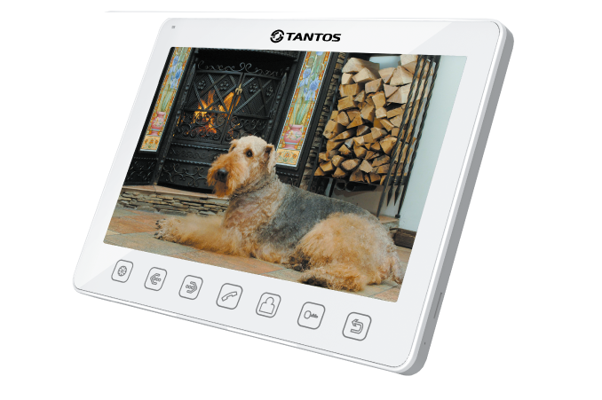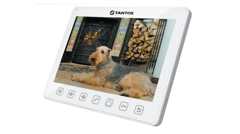 Монитор домофона с диагональю экрана 10”. Управление осуществляется сенсорными кнопками (в меню настроек есть русский зык). Возможна работа до 4 мониторов в одной системе с широкими возможностями адресного интеркома (например, громкая связь с другой комнатой или переадресация вызова на другой монитор).